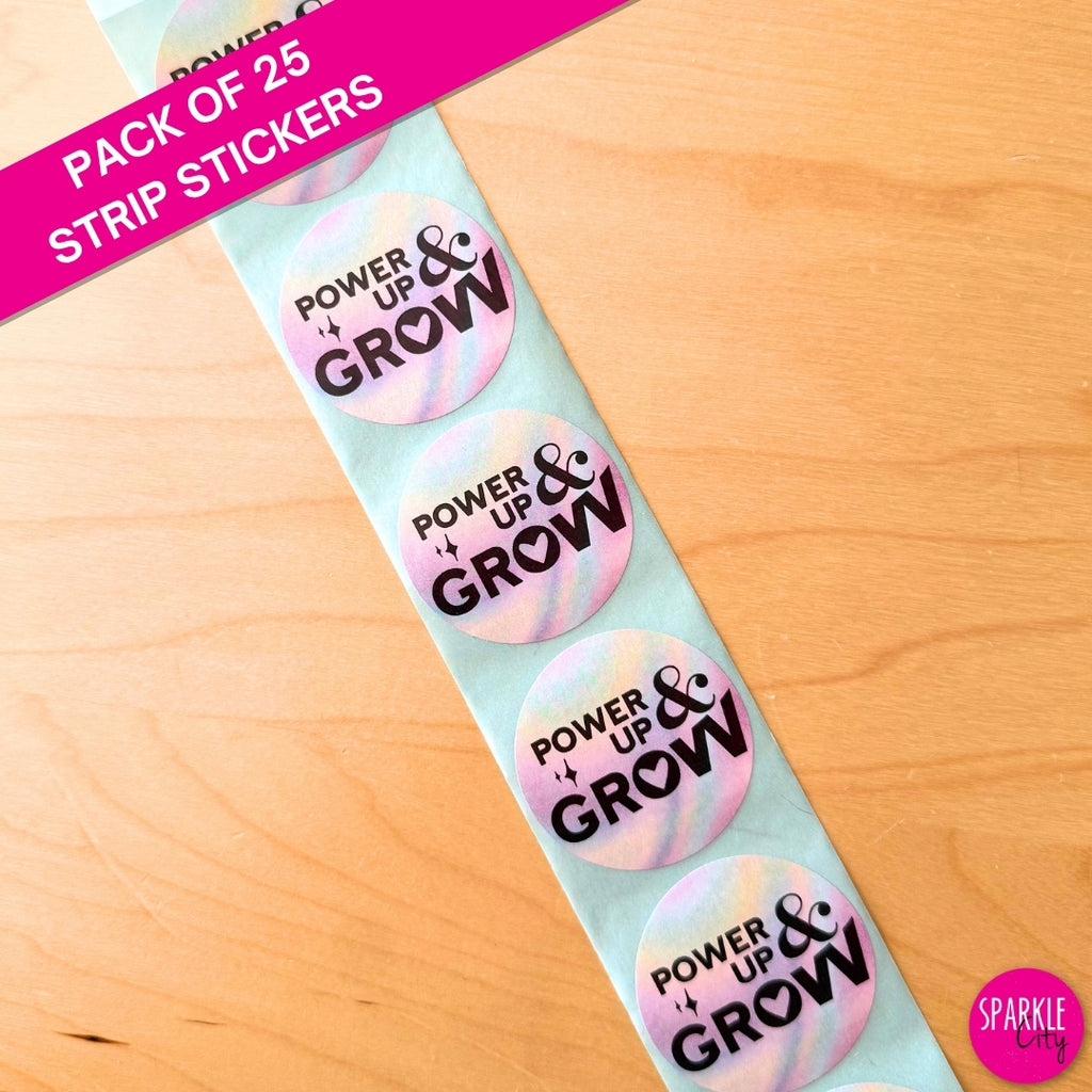 Power Up & Grow Gradient Circle Stickers are great for any occasion. Use these stickers on cards, envelopes, newsletters, gifts, etc.Sticker is 2in by 2inStickers come in strip - Qty of 25