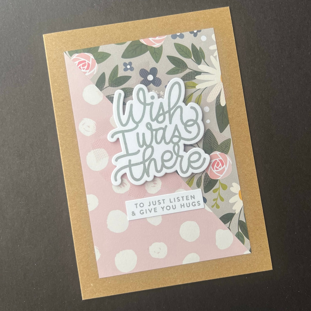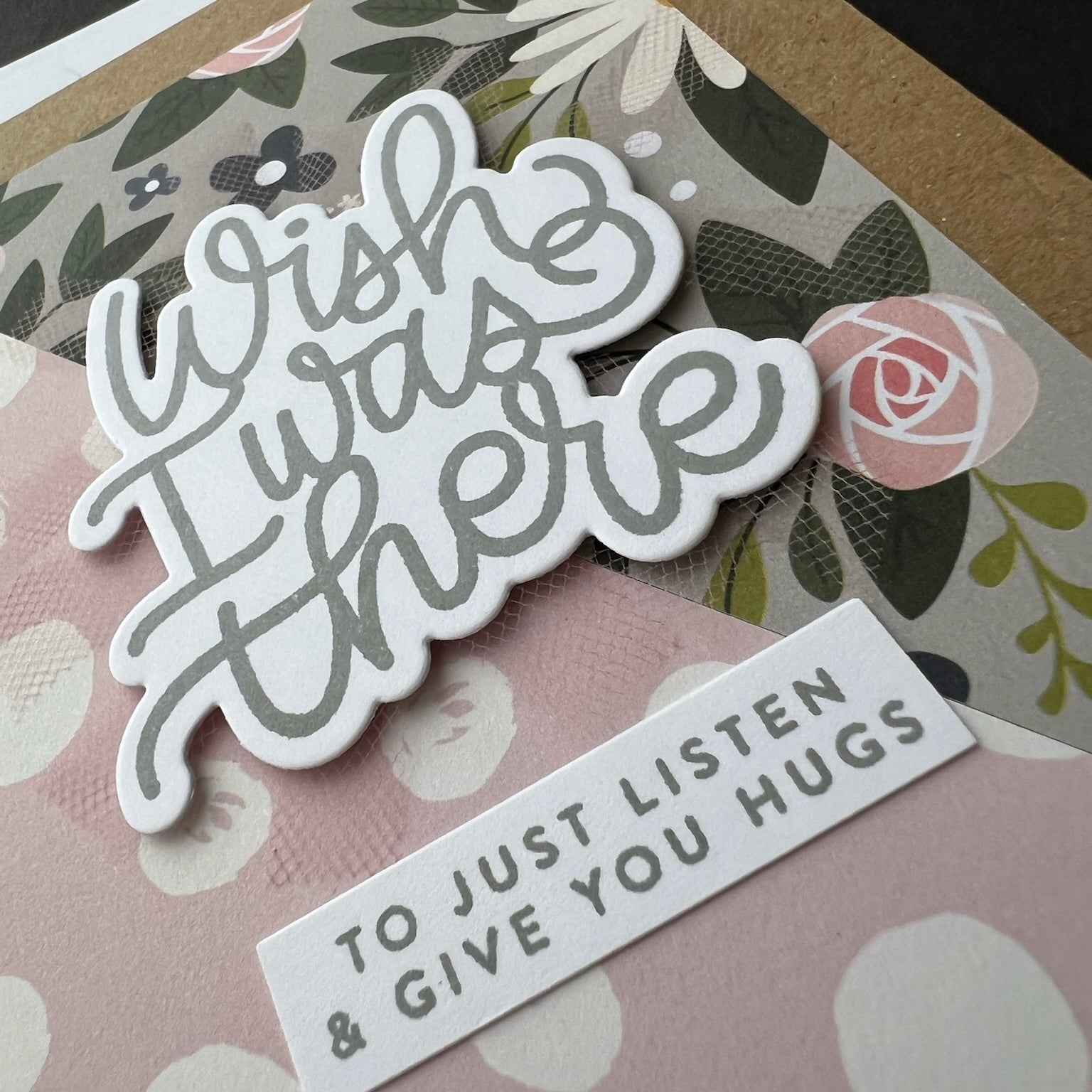 Expressing “Wish I Was There to Listen and Send You Hugs” with charm. This heartfelt card combines a warm floral pattern with playful polka dots and a whimsical tulle accent to brighten anyone’s day.